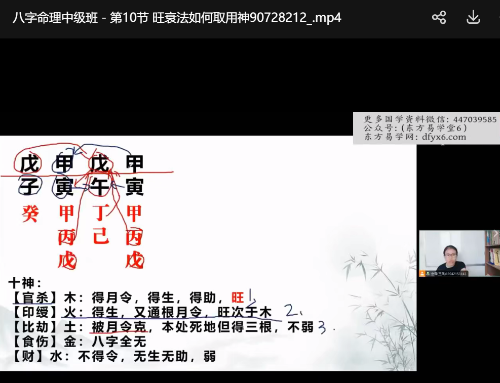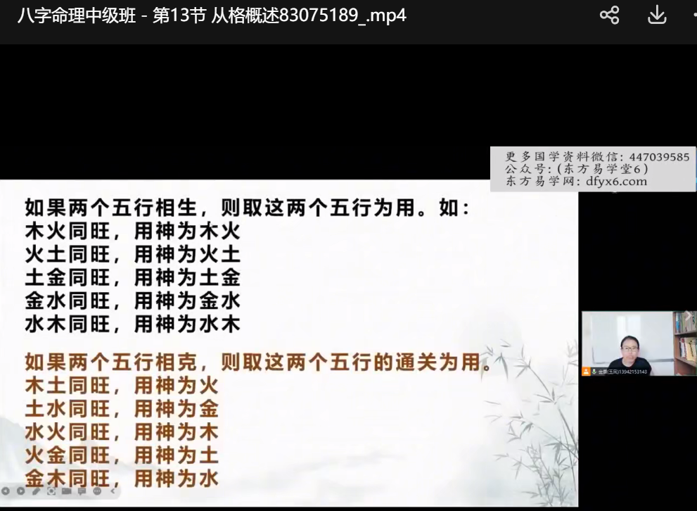 金霖老师八字命理中级班视频26集,讲解取用神,格局和大运流年吉凶,十神心性等。