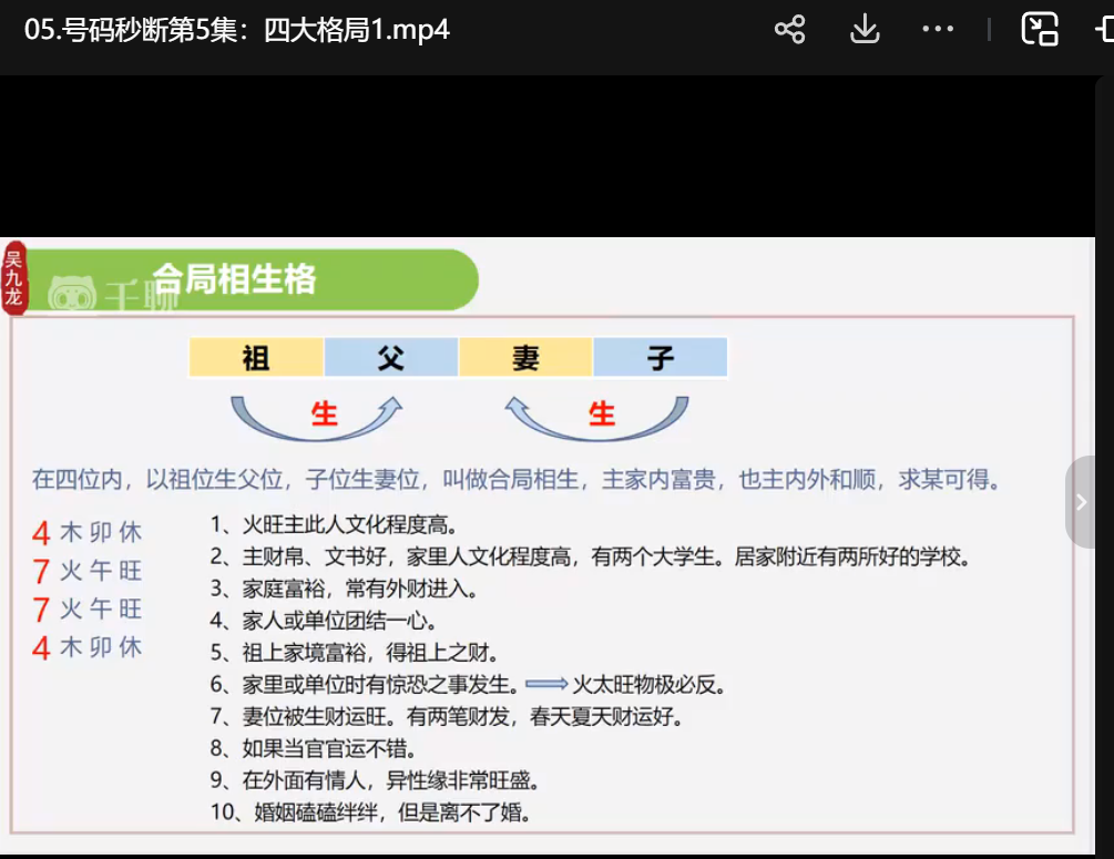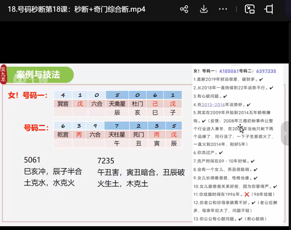 吴九龙老师《号码秒断》视频课程共21集,数字奇门来判断号码和各种信息。