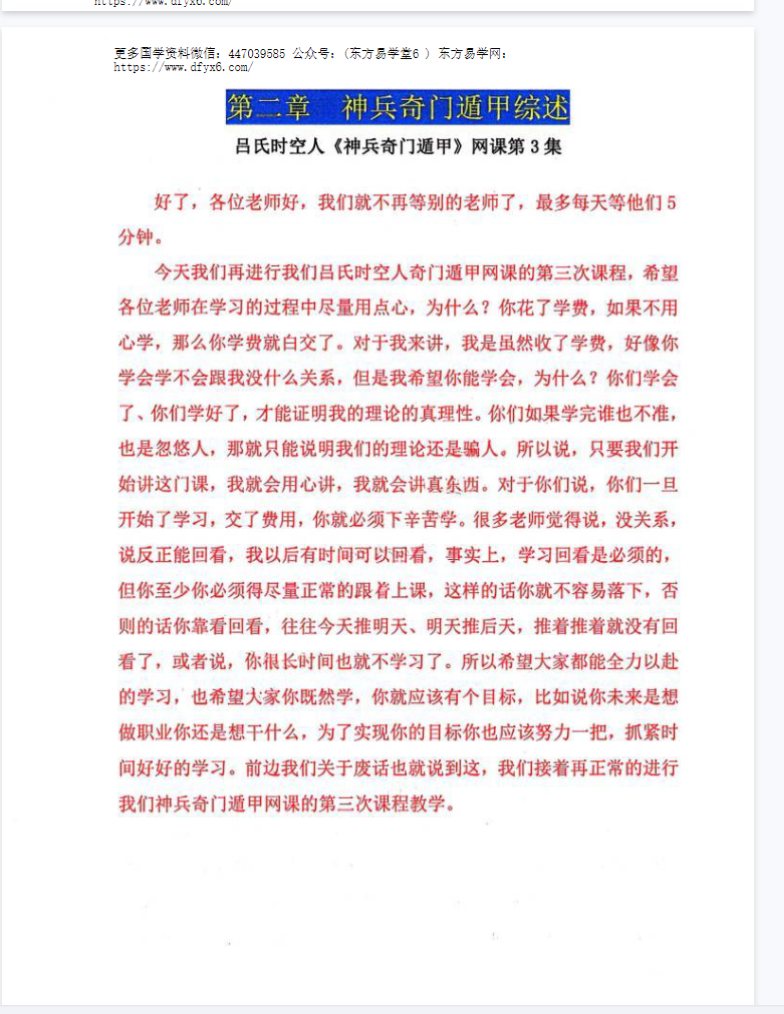 全书共900余页,是根据2023年3月吕文艺老师主讲的28集《神兵奇门遁甲》网课教程整理成的文字资料,属于课堂实录。