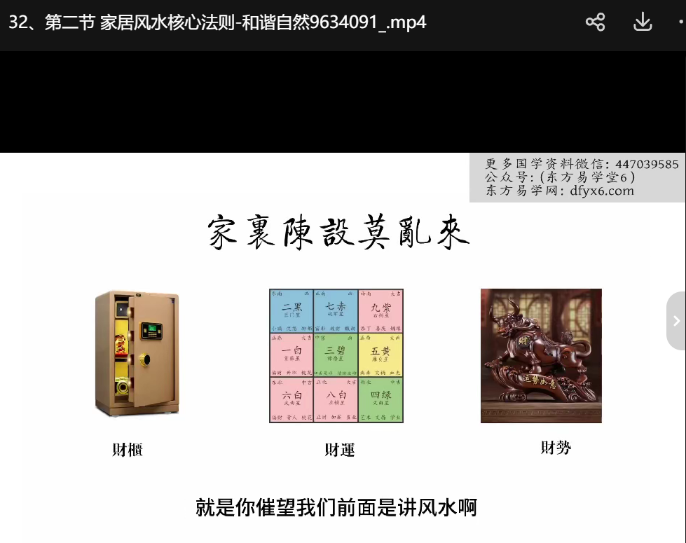 | ├──62、第五节 生活中常见的风水禁忌.mp4 33.55M