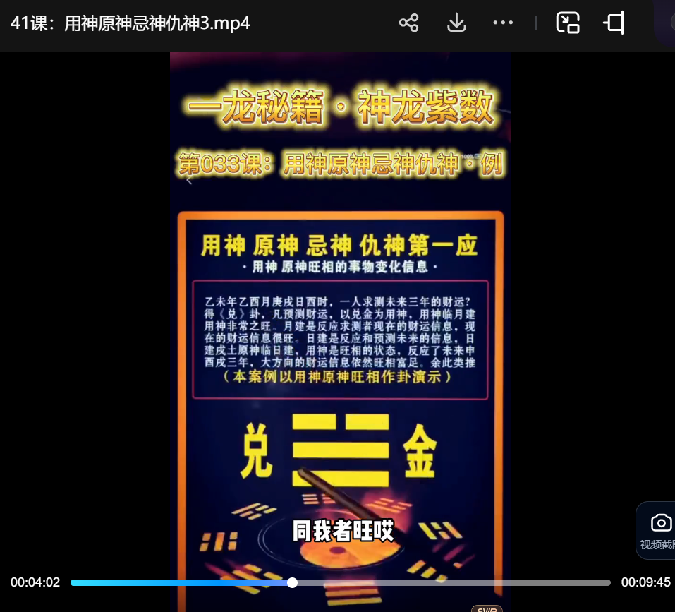 《刘一龙周易神龙紫数》86集视频,带字幕,讲解的是梅花易数断卦,可能也有他独有的数法。注意,不是紫薇斗数。