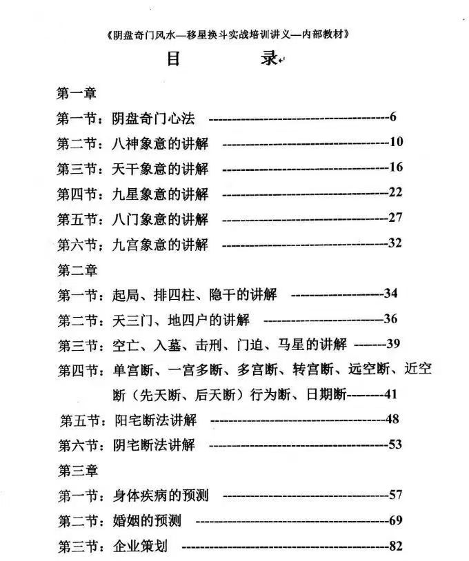 📋完整目录框架:▫️基础篇:奇门心法 + 象意详解 + 起局步骤▫️实战篇:阳宅阴宅断法 + 疾病婚姻预测 + 事业财运策划▫️高阶篇:移星换斗操作 + 催财催官 + 生男生女策划▫️补充篇:案例精解 + 常见疑问解答 + 灵异问题处理